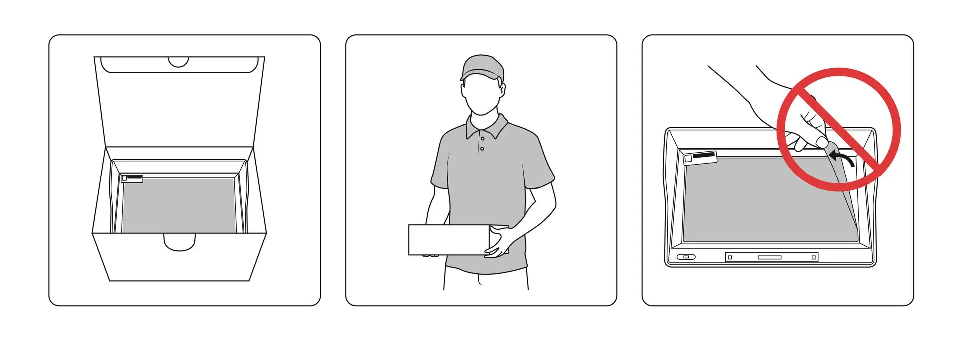 - Es muy importante: El protector de pantalla (la película plástica original) NO debe haber sido despegado o retirado. Lo mismo aplica para cualquier pegatina de protección en el producto. Si se ha quitado, no podremos aceptar la devolución.